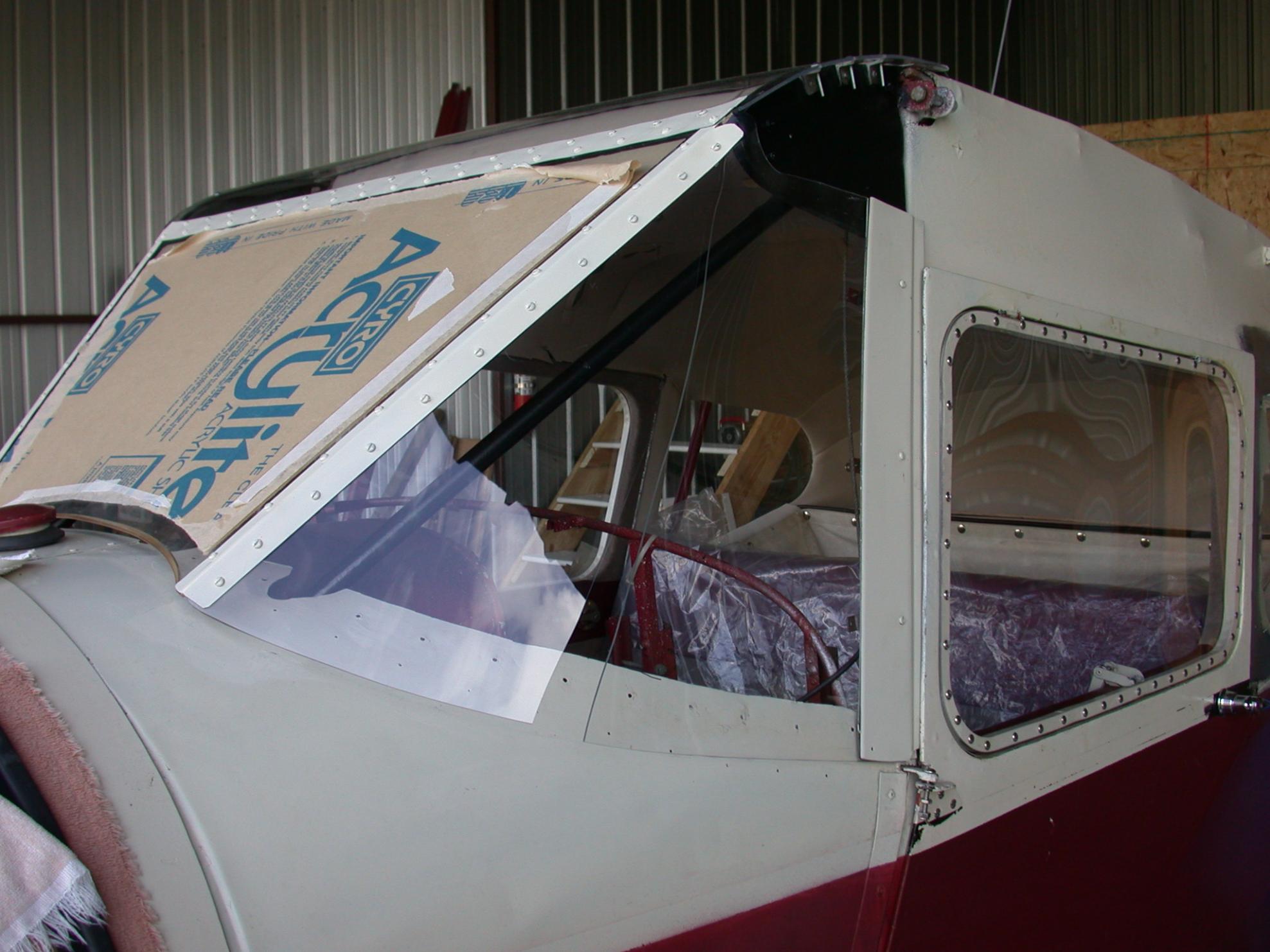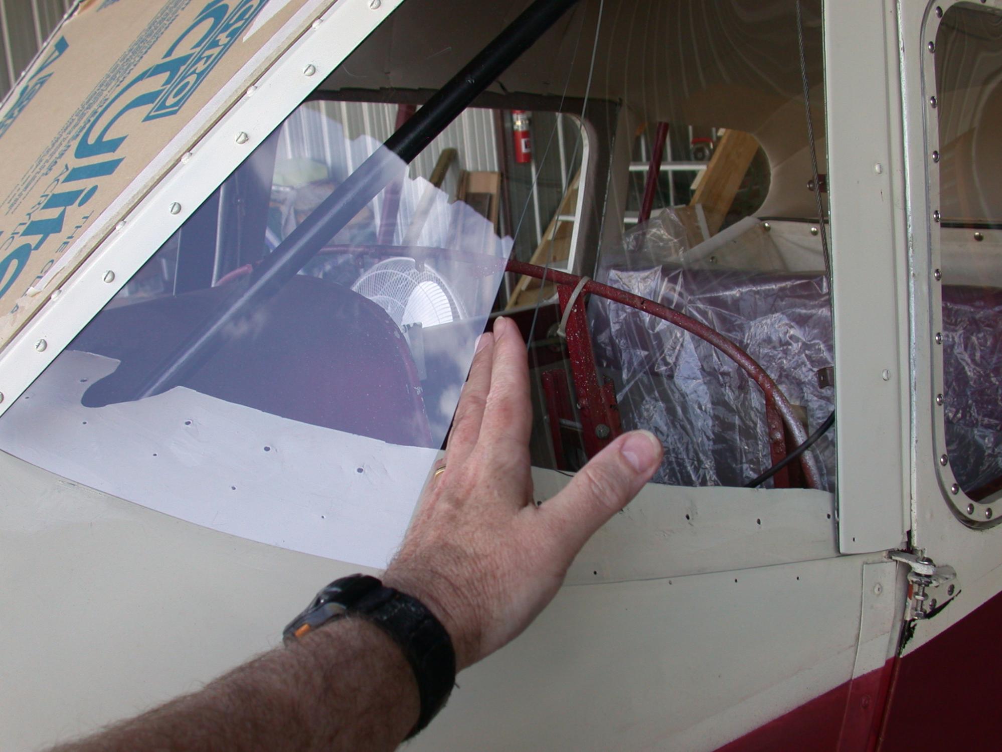 I decided to try to reproduce the 4 piece original windscreen for my 41. I did use 10-32 screws and nuts instead of rivets in order to get it right prior to finding a REALLY long throat rivet squeezer (no way I was going to try to buck all those rivets without cracking the Plexi). Since finishing it my IA has looked at it and said that the substitution of all those screws makes more sense than using rivets. I will probably go to rivets eventually, but there are a LOT of other projects in line first. If I remember right the one at Sun-N-Fun also used small screws. If you decide to try this (it turned out to be MUCH more work than I ever imagined!) you need to drill ALL of the fastener holes oversize so small pieces of rubber tube can be put in the holes. If the fasteners bear on the plastic it WILL crack! One screw or rivet rubbing the plastic hole edge will ruin the whole piece. I had a whole pile of broken transparency in the hangar corner by the time I got finished.