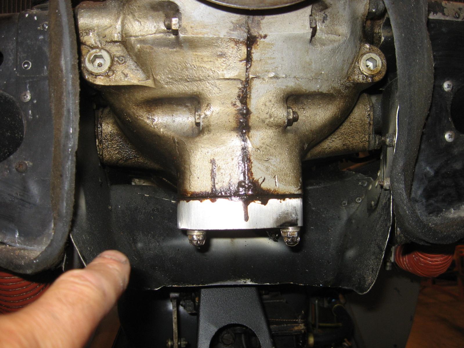 What was the intent of the square hole cut in my nose-bowl? Note the deflector shield. I assume this was to introduce a cooling stream over the bottom of the crankcase? There is a baffle under the crank that looks like it could be home-made. The baffling under the crank is riddled with large "holes" and poor fitting areas. I can not help but believe that this has a negative effect on the intent of the pressure cooling system and airstream coming down over the cylinders.
