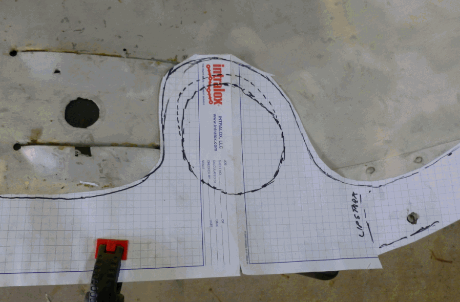 Also, my exhaust muff was rubbing up against the edge of the hole in the cowling. So the dashed line shows where I plan to make the new opening to allow a little clearance.
