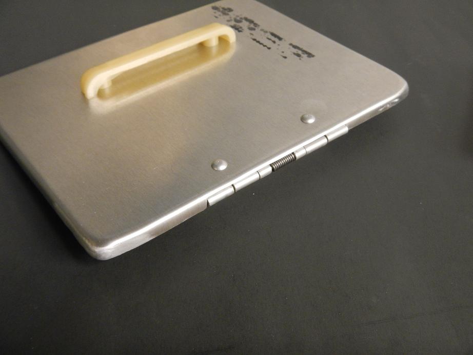 From the photos you'll see the hinges are formed so that the door covers the entire opening in the panel, and the hinges are configured in such a way that they are tucked away a little for a tidy appearance. The carbon steel springs are wound so the coil tightens (diameter decreases) as the door opens for smooth operation.