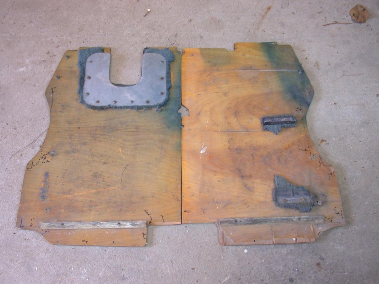When I bought the 45 the RH brakes were missing the pedals and the cables were removed. The floor boards (plywood) had been replaced with the holes for the RH pedals covered over. All he pulley holders were still there but it looked like someone was tired of rigging the RH brakes and just took them out. First photo is of the floor board as I got them. Still had the metal heel plate for teh pilots brakes, the holes for the old battery box and the mount for the Pyrene fire extinguisher. Note the RH wood looks a bit different than the LH. I think the owner just cut a new piece of ply and left the hole out for the pedals.