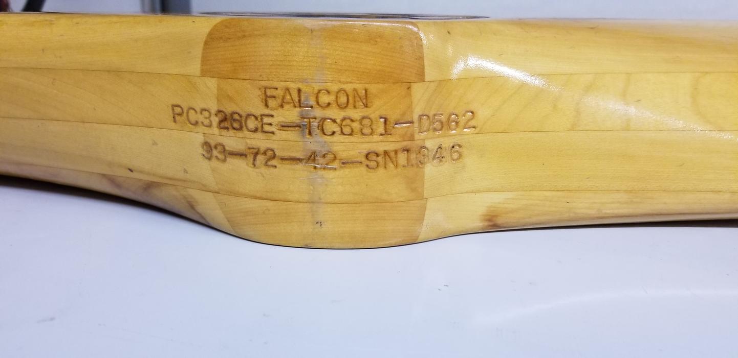 The wood prop is a Falcon (Fahlin) 72-42 propeller in airworthy condition. As you know, propellers do not have to have logs, so condition is everything especially for wood props. It has been on my L-2 since new (the prop, not the airplane) and has always been hangared. The last time it was inspected was by an AI during an annual inspection and was signed off as being airworthy. It has since been stored horizontally in a heater hangar. Of the two hubs, one comes with an inspection certificate and the other does not. Take your chances but as far as I can see the one without the paperwork has no cracks and is airworthy. Neither prop hub comes with a front "crush" plate.