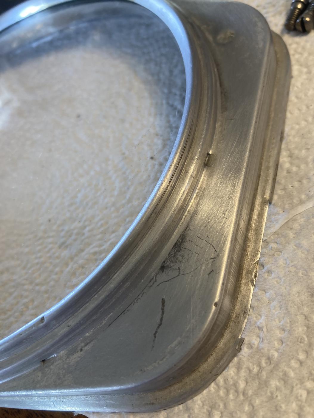 You can get a replacement bezel from the antique clock community. When I did my BL I silkscreened the face and the two small plates for the oil temp and pressure. I left the tach and oil pressure alone, but sent the oil temp out for repair.