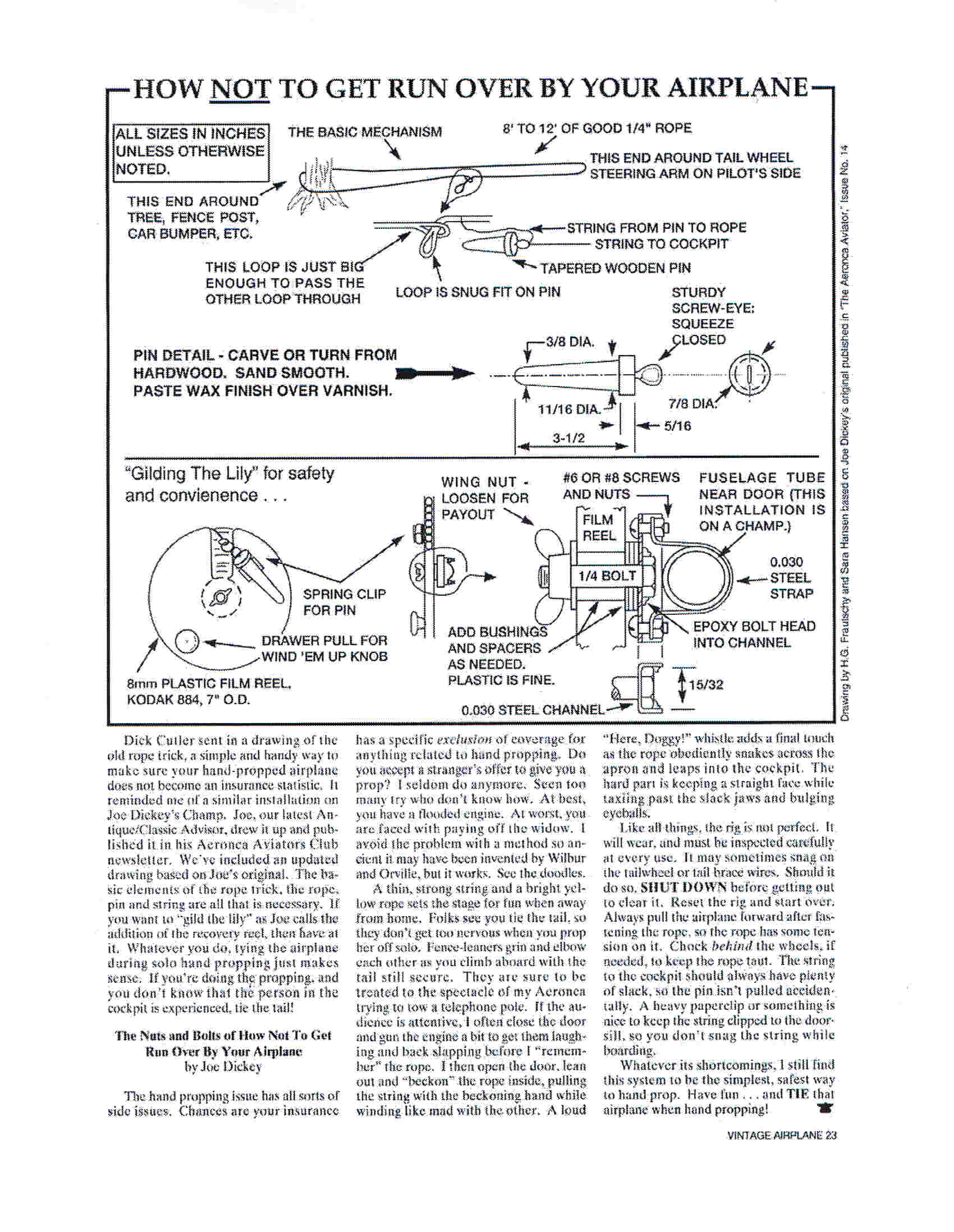 The sailplane release is fine and a very elegant solution, but it is dependent on you having a chain from an airport tiedown (or something similar) that gets left behind after you take off. It also requires a little modification to the airplane.