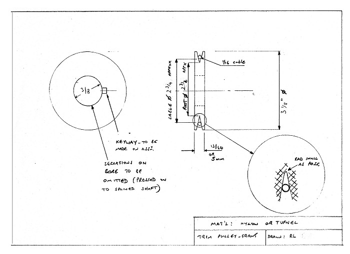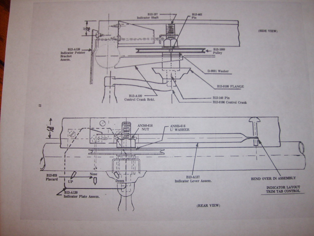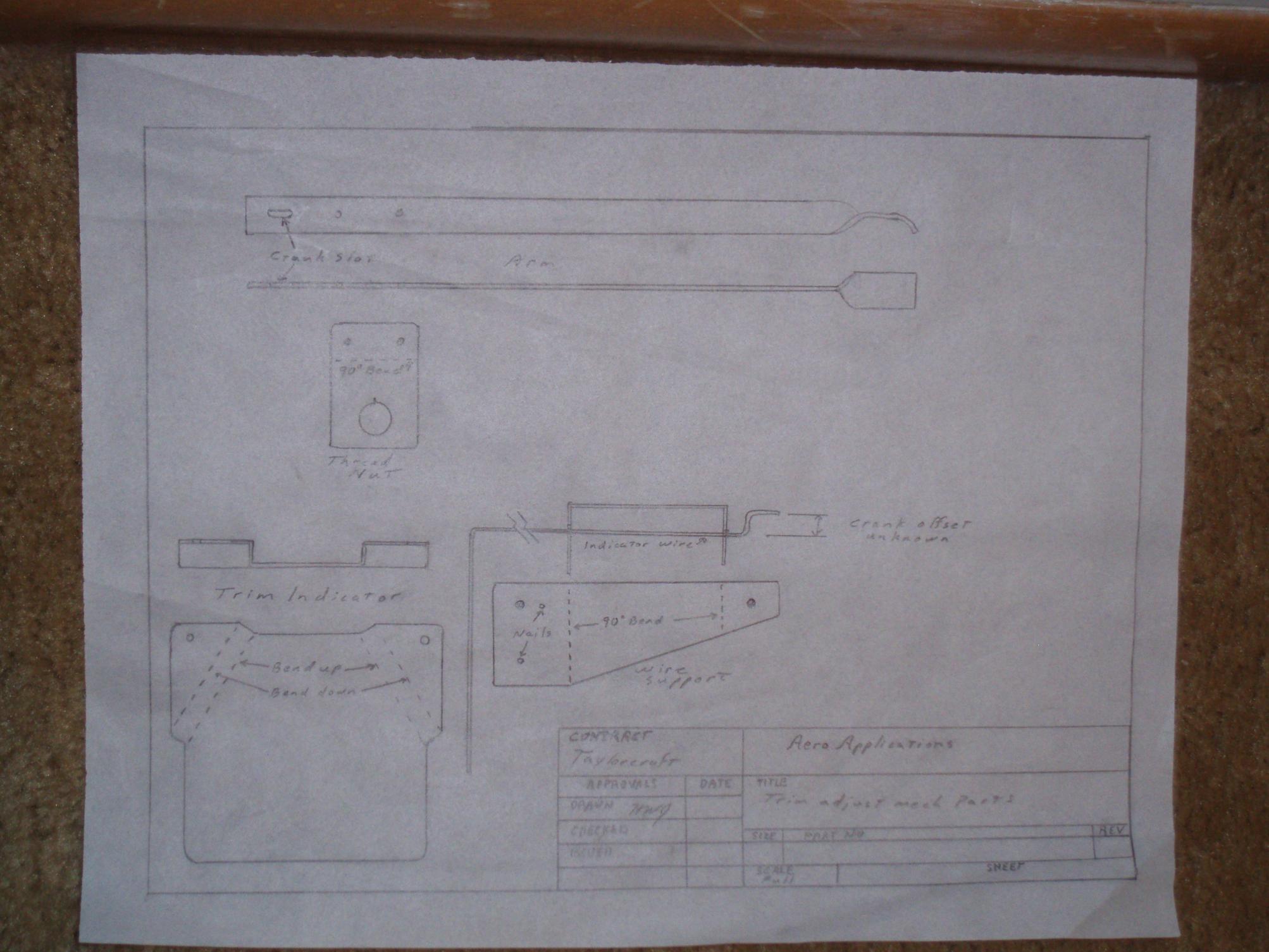 Marty had asked me for drawings of the trim indicator. I am posting a copy of the drawings for anyone who wants a copy. I HAVE NOT built a whole one from these drawings yet so there are a few things that need to be added. If someone knows what the offset on the wire indicator is I can update the drawing, if not we will need to experiment a little. I wish I had measured it when I was messing with the 45 to make the drawing.