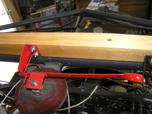 Make sure you put the little cut into the hole in the thread nut so it will thread onto the screw. The hole in the thread nut should be the minor diameter of the threads. The sheet metal thread nut is a fairly loose fit over the threads so it can ride up and down the threads smoothly. The wire Support nails (I would use screws) to the back of the wood above the cross tube where the compass goes. There was a little plate on the front of the wood, but I saw a plane with the core of a steel pop rivet on the front and it worked better. He had just tapped the core into the wood as a bearing for the wire.