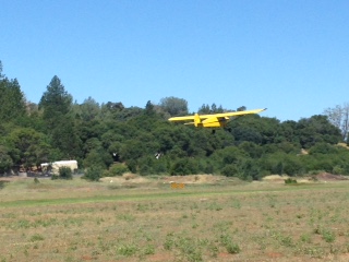 The next day, Sunday, most departed for home. First two pictures are the Fries taking off. Ron kindly offered the use of his guest house to spend an extra night. Monday morning I took off at 8:39 am. I knew there was a marine layer in the LA basin but out at Riverside it was supposed to burn off by 11:00 about an hour before my ETA. Going home I had head winds again but they were not too bad at altitude. Went over the Tehachapi Pass at 10,000 feet and headed for the Cajon Pass. Since I was at altitude for most of the trip, I was aggressively using the altitude adjustment on the Stromber carburetor which also added about 150 RPM. Picture looks into the basin from just outside the Cajon pass. Solid coverage at 12:00, Riverside RAL is reporting 2,000. So I enter the basin and head towards Banning BNG that is reporting clear. After flying over Redlands REI I could see holes which I dropped down through. While I was setting up an approach to land at REI, RAL started reporting 3,500 and broken so I went on and flew into home base. I flew 4 hours and 53 minutes, an average ground speed of 81.9 miles per hour, and 400 miles. I had drained both wing tanks but only topped off the main with 5.69 gallons so I figured that I burned 17.69 gallons for a burn rate of 3.62 gallons an hour. For me, the Stromberg makes its biggest difference in fuel burn. Going to O22 it was 4.38 gallons an hour, returning it was 3.62 a tad over ¾ a gallon per hour difference. And my mileage improved to 22.61 miles per gallon. All in all, a fun trip.