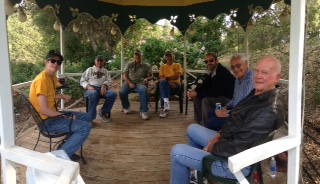 I took off from Oakdale O27 at about 3:35pm and headed to Columbia O22 landing 29 minutes later. Pictures below show the Taylorcraft planes. As others have said Ron and Rosemary Sawyer are wonderful hosts, last two pictures are their spectacular rose garden and a group of the pilots sitting in the gazebo at the top of the garden.