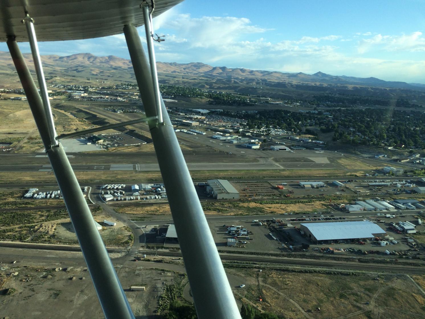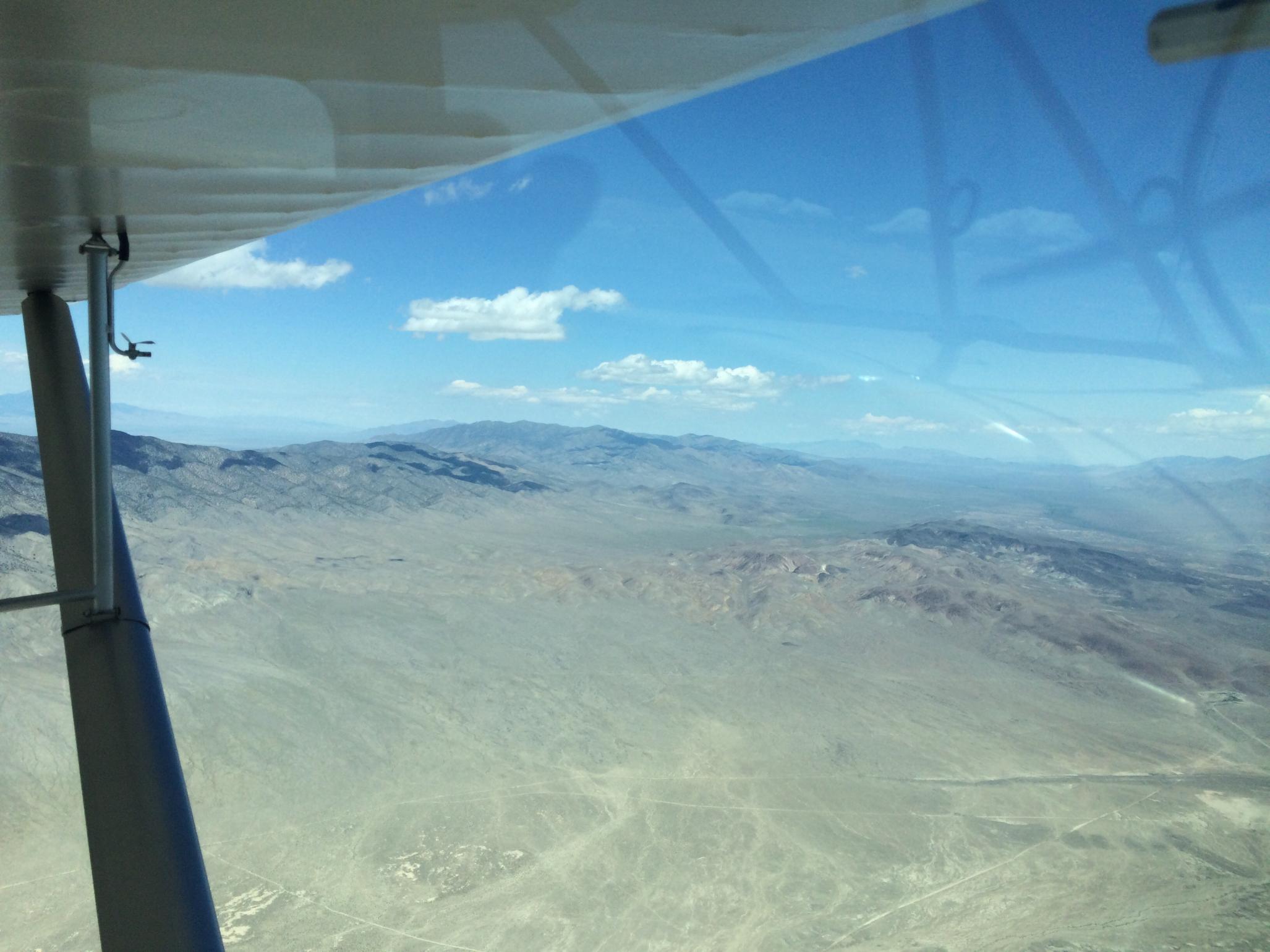 Left Monday from Reedley Ca with my 10 year old grandson. Climbing to 10,000 feet flying over Columbia then n/e to hwy 50 and Lake Tahoe. Smooth clear flight. No snow on top which is sad. Landed Minden Nv for fuel and breakfast. Then climbing out to 9,000 headed for Elko Nv. Interesting restricted area cause us to hug the mtn top for awhile which was fun then passing Fallon NAS keeping our eyes pealed for military aircraft. Air beat us to death I was so glad to get on the ground and rest. First day 5.4 hrs 470 miles 21.1 Gallons.