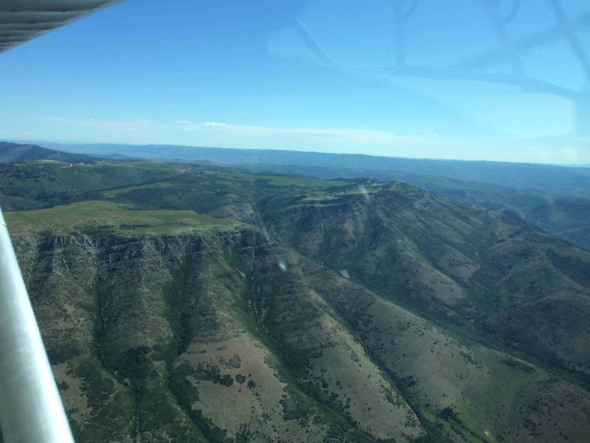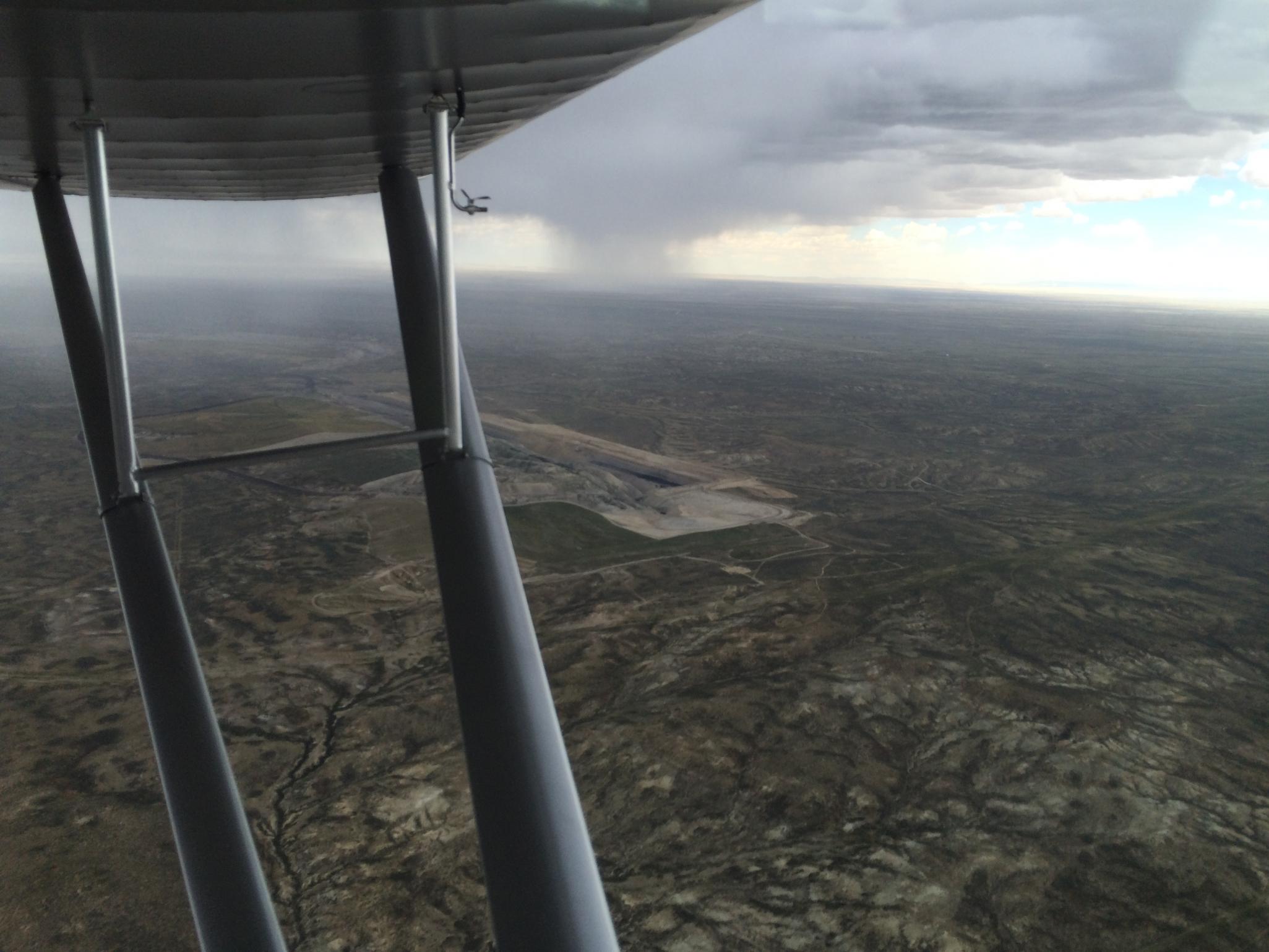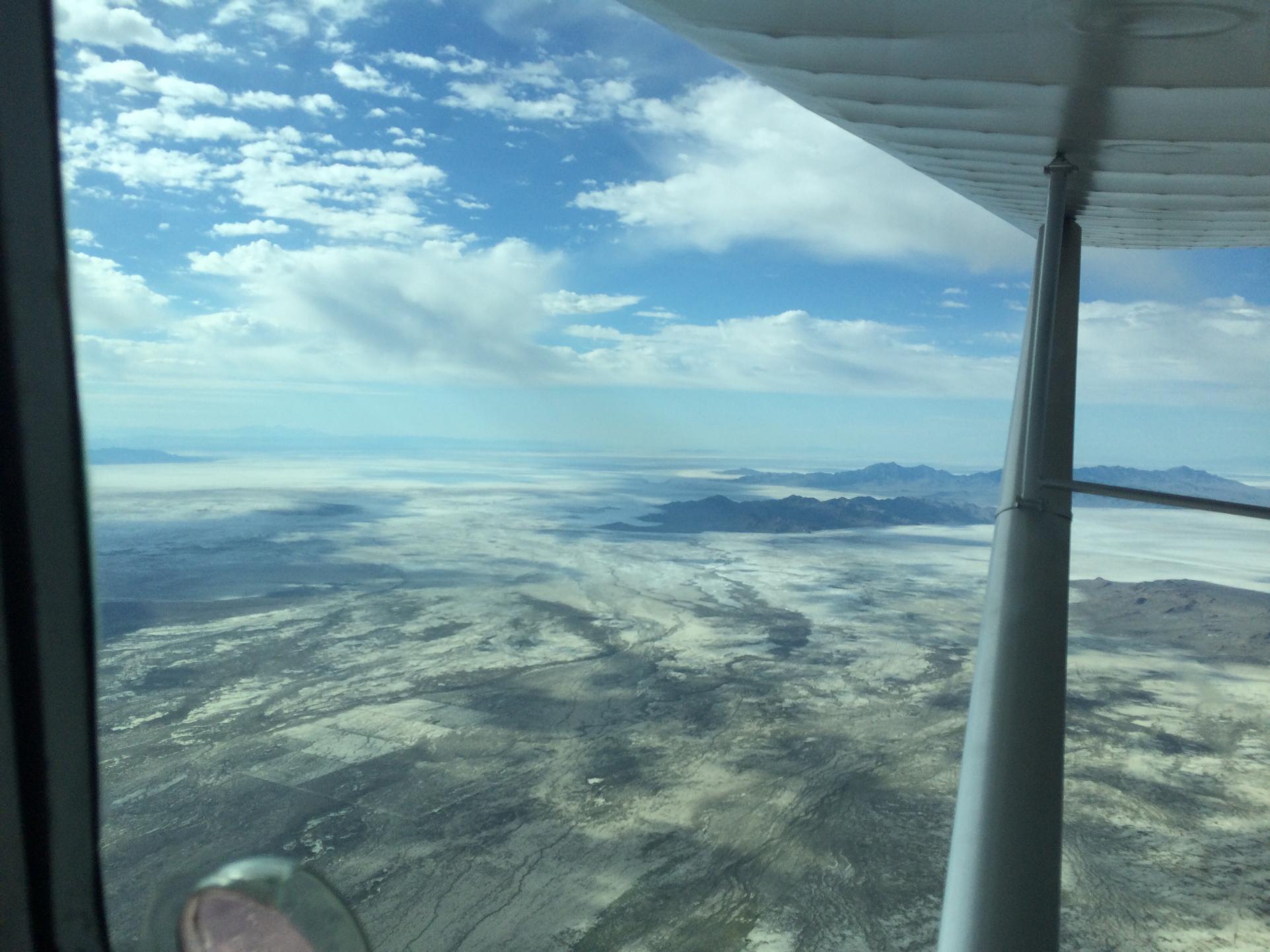 Day 2 up early with clear skies. Climbed out to 10,400 ground speed for the first 2 hours was only 73 mph. More mtn and high desert. Pretty but everything looks the same until Salt Lake which we flew over 26 miles to cross. Crazy colors in the salt. Flew the north side of the class B which was my most nervous time of the trip so far. If you look close on the Garman map it shows the flight paths of the airliners. I was flying right through it. The airlines would be at 7500 so I felt it would safe enough with us at 10,400 and as it turned out we didn't see even one plane. Once past Salt Lake City we cross back into some ver pretty mtn with lakes in the valleys. Speed also increased. Stopped in Evanston Wyoming bought gas then asked the office if there was any food close by. He tossed me a set of keys and said to take the airport car. New Saburban. Nice. Density altitude 9,500. Wondered if the Tcraft would fly or just taxi down the runway. Longer than normal roll buy wants in the air 200 fpm I'm happy with that. Flew over closer to the mtn hit some up draft 800 fpm back to 10,000 ft in no time. Ground speed for the rest of the day ran btw 103-118 mph. Thunder storms now to the south with lighting then more to the north with lighting. We turn north to get around the first then once we got around it turned back south then all hell broke lose. Raining pretty hard and at the same time Zachary and I both announced that our legs were getting wet. Lol must have a leak somewhere. Landed in Rawlins Wy where we bought gas tied her down and found shelter from the rain. Bob the airport guy let us stay in the pilot lounge for the night. Bob is an awesome guy and if you are in that area be sure and stop. Gave us a break on the gas because we're Oshkosh bound. 5.6 hrs flying time 21.4 gallon 350 miles