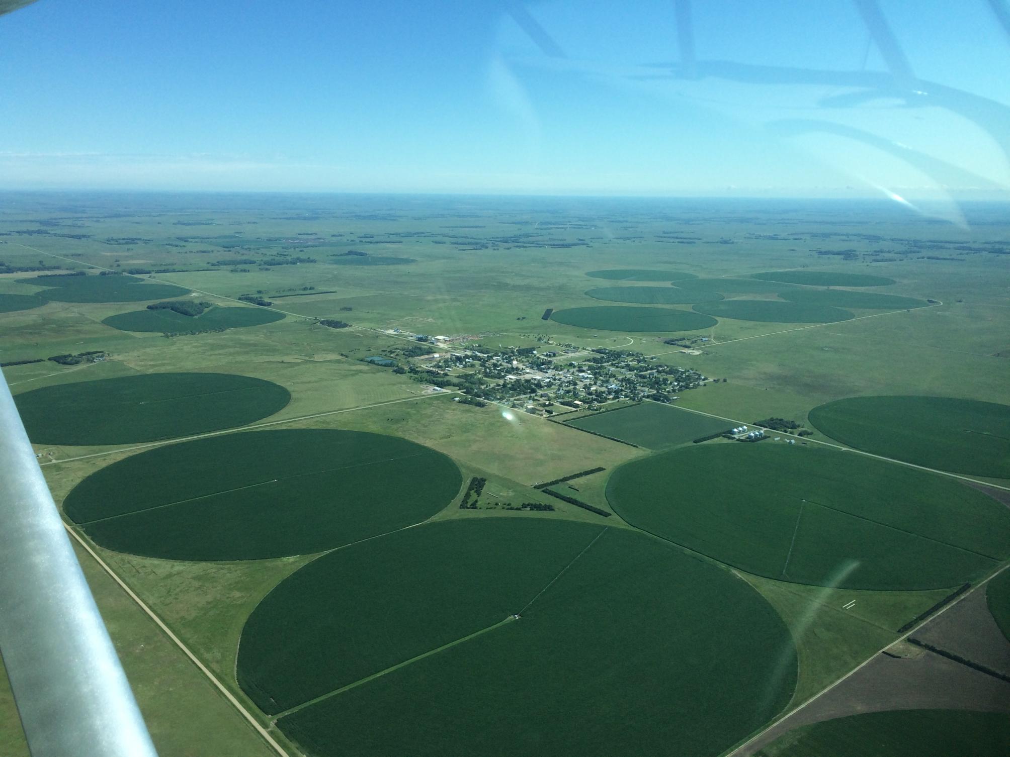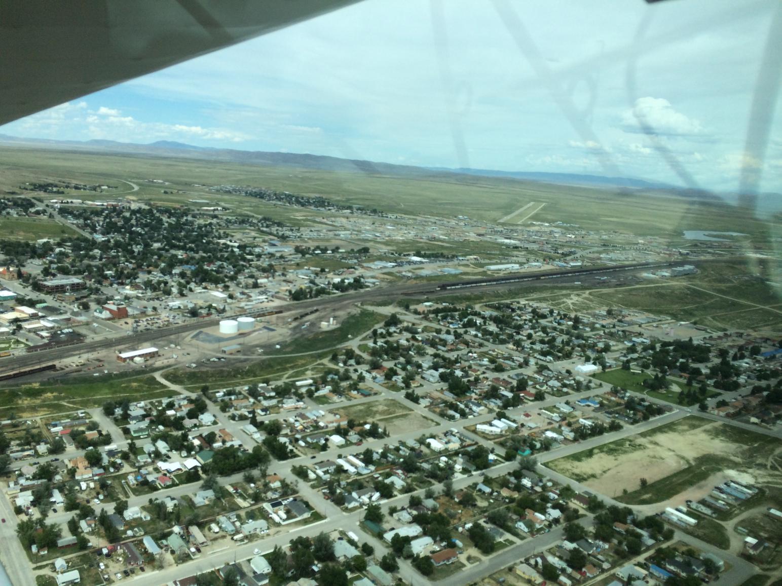 Day 3 Still in Rawlins Wy this morning with both gas tank drains leaking fuel. So much for leaving real early. We had a good night sleep in the pilot lounge so now we were off to The Ford dealer who had the right o-rings so once those were replaced all was good again. T-craft was a little slow this morning but once she caught her breath we climbed out to 8500' Over cast this morning with light rain but the air was smooth and going east with cloud cover no sun in the eyes. Couple more mtn ranges before the flat land start but the last mtn range was unbelievably pretty. Stopped in Guerney Wy for fuel and lunch. Tower asked if we were going to Osh then we had a whole conversation about the trip so far, how cool was that!! Still light rain but smooth air, great flying day. The farms are starting to show up with farm house 1-2 miles apart. Rolling hills with small rivers. We had to use the heater this morning. Landed at Valentine Ne. The gas guy came right out and helped fuel then threw me the keys to the airport car. How awesome is that. We got a hotel for the night sat in the hot tube had dinner and went to bed. Great day!!! 350 miles 4 hrs flying time 16 gallon