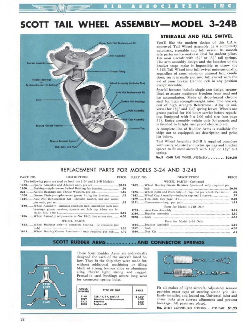 There are six Scott #1303 rudder arms available on Ebay for our planes. With shipping they are $75.00. I just bought one for a spare.