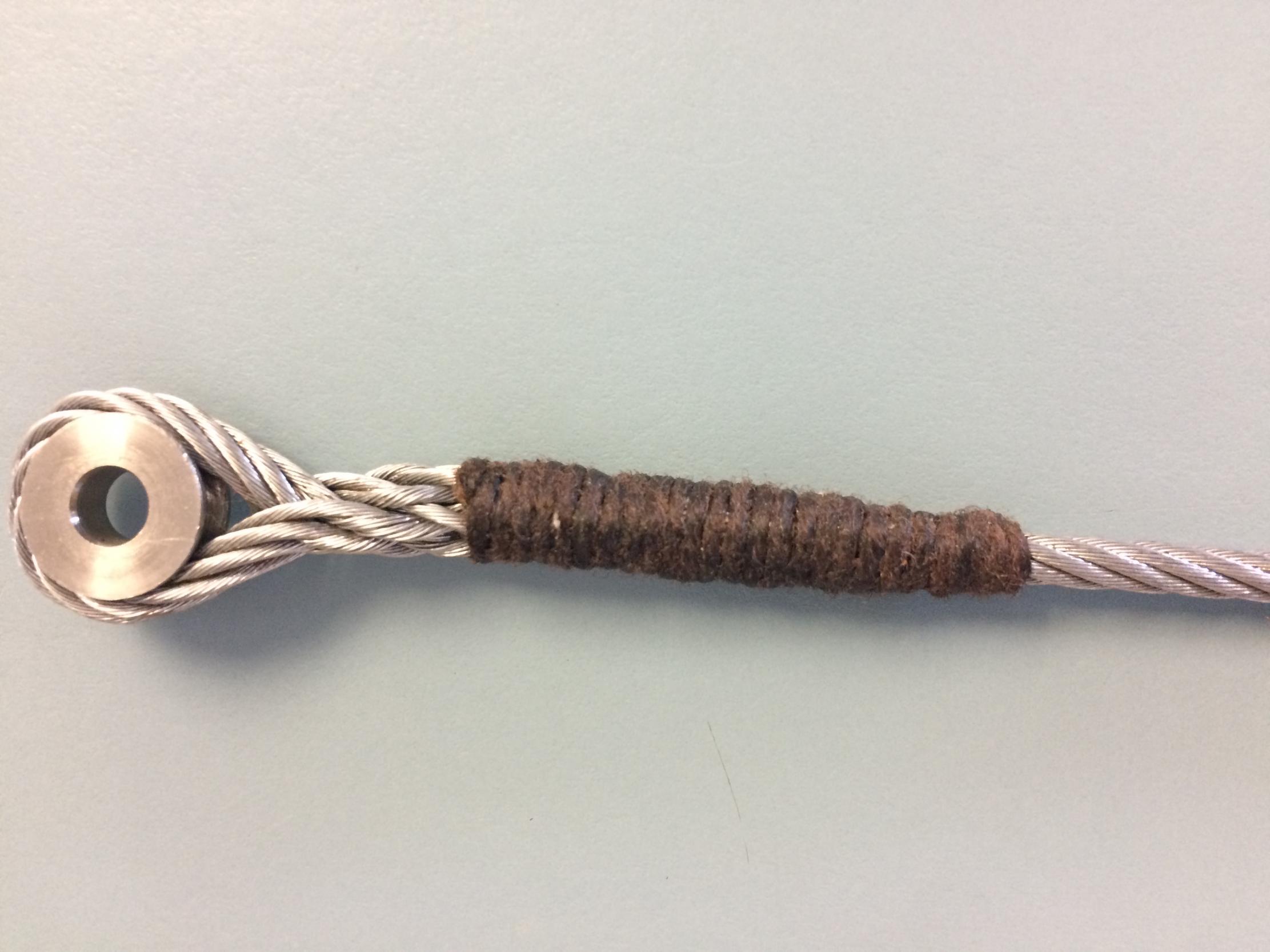 I am in the process of making a set of new cables for our Model A Taylorcraft. Here is a picture of one of the ends I have done. The only thing left to do is shellacking the serving.