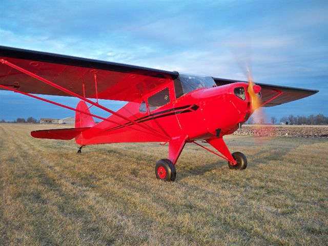 Always called her Aunt B, she was a Taylor, a B model not a BL, BF or BC, she well old, sweet & I bought her in North Carolina. Delivered 79 years ago (Christmas eve 1938) 40 miles from here to Kellog airport, flew around Kalamazoo till 1941, sold to a guy in Oklahoma who hung it in a barn & went to WW2 & never returned. It hung there 50 years till a gent in TX found it & totally restored it to original in every way, color fabric, etc. It was 14th off the line & weighed 620#. I had several Tcrafts & the lighter pre-wars always flew better IMHO. Learned to fly in a '40 on ski's.Eric Richardson