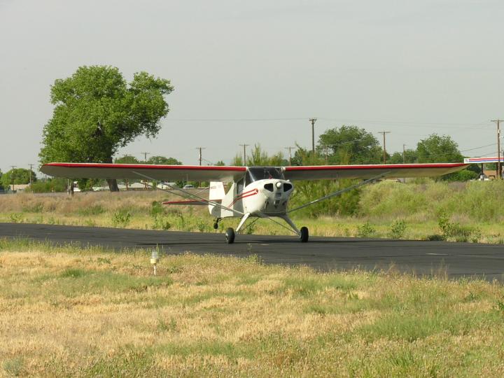 It was the first time that I saw air beneath her wheels and the feeling was great. She climbed great with one person and also did a very respectible job with two of us full-size pilots out of Mid Valley Airpark, New Mexico, Elev. 4850 ft. (I'll post performance numbers later.) Just have to tighten up the tail wheel linkages to give more postive wheel control on the ground and start getting lessons and experience toward the tail wheel endorsment.