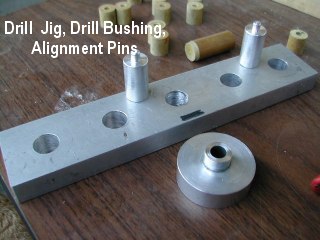 The "tool" set consists of a machined block of aluminum, two double-ended alignment pins, a drill bushing, and a hard-to-find 11/16" Forstner drill bit. You will need only a few blocks of scrap wood, a couple of C-clamps, and a good drill motor.