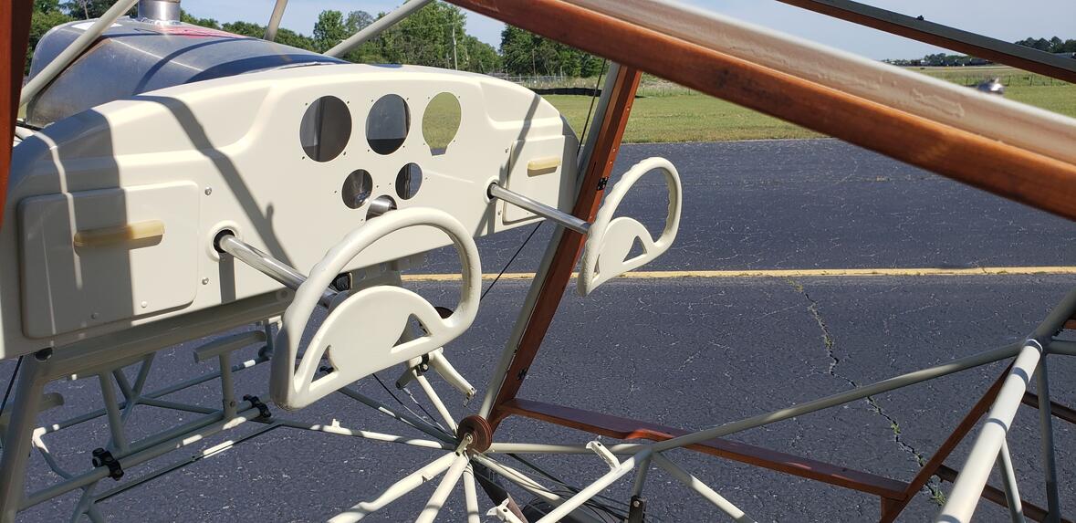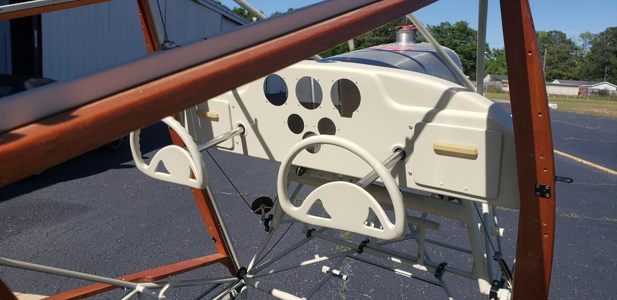 New panel and glove box doors painted and installed along with the yokes stripped and painted and installed. These are Scott's Glove Box doors and they fit BETTER than the originals. Thank you Scott for being the craftsman you are! Thanks to the Wenglarz for the panel! Click image for larger version