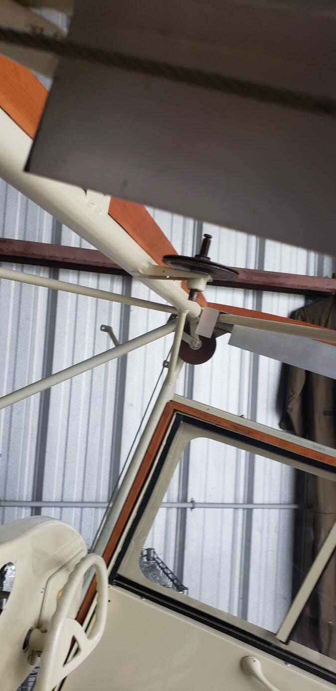Part two question: I appear to have all the trim parts in the elevator(pictures attached please excuse as these control parts are next on the clean up before paint and covering) I am however missing the trim cable and need the size of it and how it runs from the front pully to the rear pully. Is it a loop? If so how does it attach as a loop? I have heard something about a spring...if so what size and where does it attach.