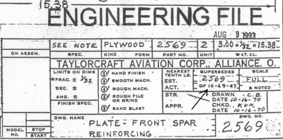 The Gilberti / Harer STC seems to assume that every T-craft already has these part 2569 pieces on the spars. But as far as I know, the VAST majority of Taylorcrafts do NOT have these pieces on them.