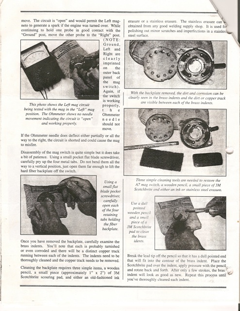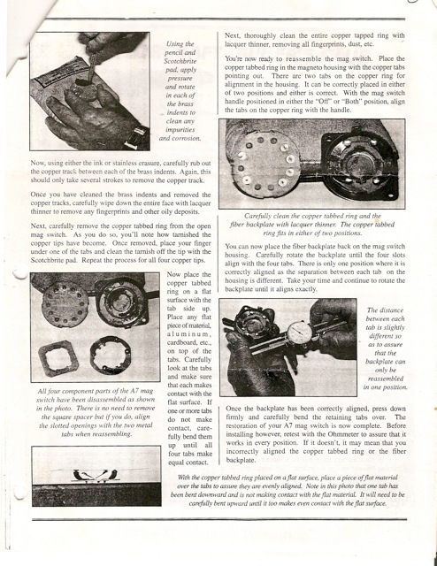 If you still have the article on repairing mag switch, I would appreciate your sending it to me. Lee Nicklas 4021 E. 88th St, tulsa, OK 74137 and/or [email protected]. Would be glad to pay any reasonable cost.
