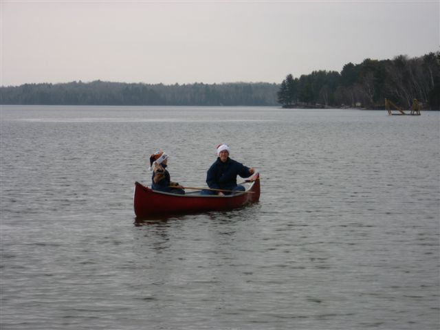 I think the big fella upstairs is trying to confuse us all. The attached picture may just look like two joes in a canoe, but this is Christmas day in Northern Ontario!! Normally on Christmas day, we would be skating with all of the neighbors on a foot of ice at this same location.