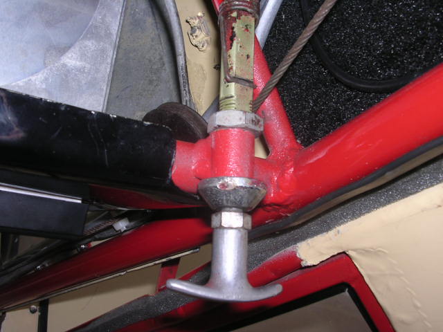 Where is this T handle located? In my old fairly origonal bird I have a T handle located under the panal at the extreme left. Wondered what it was for. As this bird is still full of coon hsit in a dark hanger I have not traced it down yet. Working on getting the wings off.