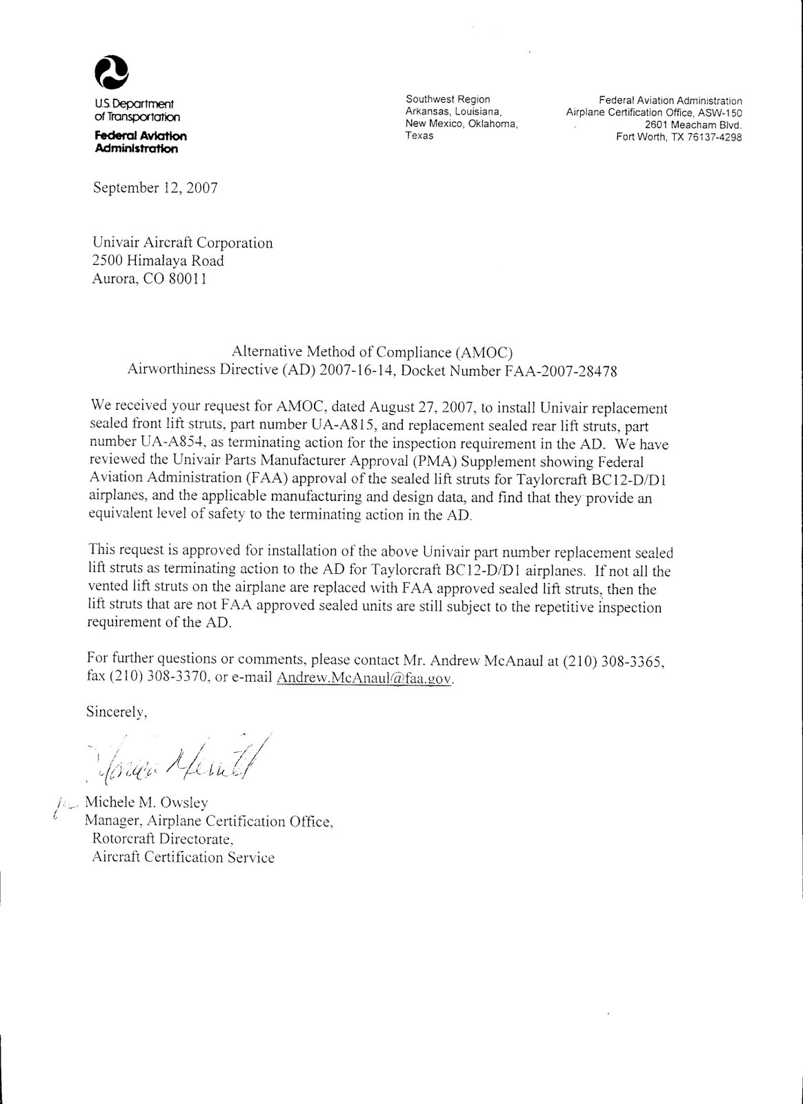 This was posted on the Virginia Carolinas "VCTOC" Blog. It appears Univair struts are now fully approved as terminating action and more or less an AMOC for this AD.
