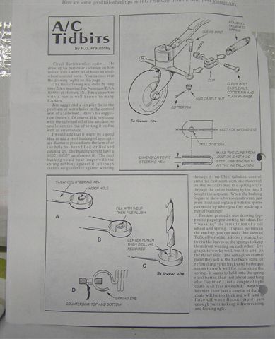 I have a drawing on a really good way to repair worn holes on the rudder control arm and how to make it last longer. If anyone is interested I would be glad to mail a copy or I can take a picture and e-mail it.