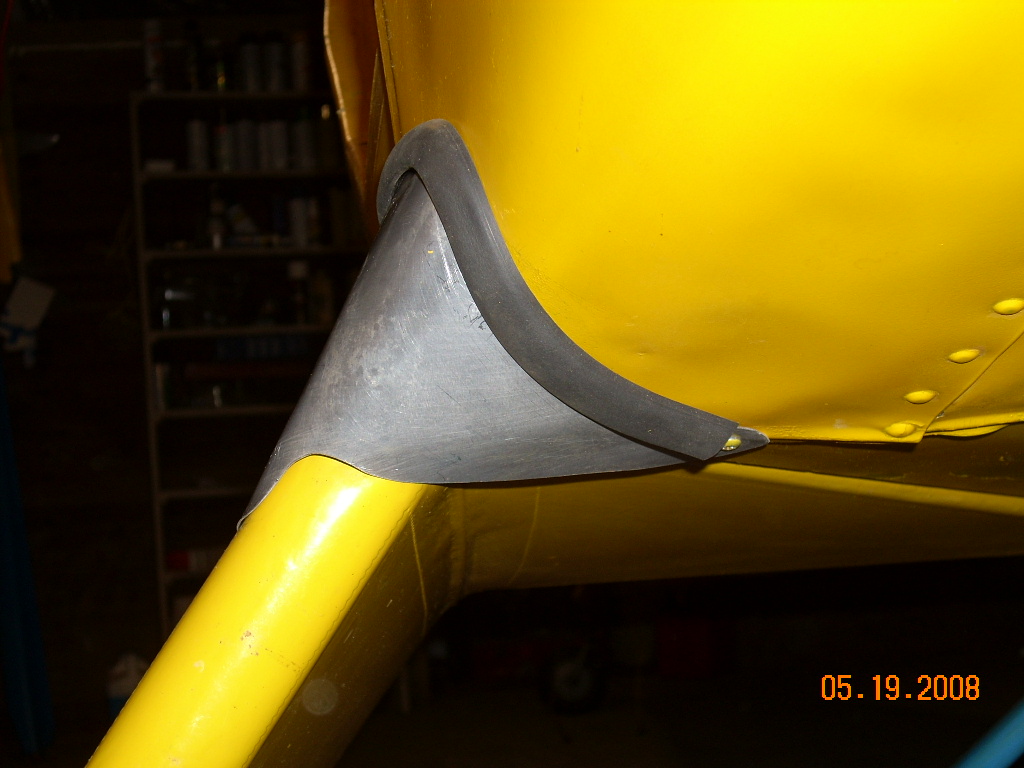 Thanks guys, Bill, I thought there was a flange, it kinda wants to bend just where you're saying. Larry, as far as I know it wraps around the front and then bends ~90' and matches up with the nearest screw in the lower cowl to fuselage seam, (which on mine are machine screws with nuts somehow fastened on their end). You can kinda see the screw head in that head on photo just to the right of where the rubber ends. Got the pattern for these off of the project I had in the barn. When I made them the first time they ended up too short for this plane, kinda like the positioning of the #s and stripes. Each one hand made.