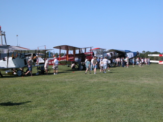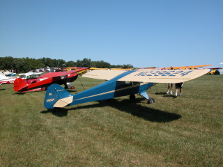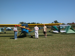 Just got back from the Antique Aircraft Assoc. flyin in Blakesburg. By Friday there were five Funks and only one lonely T-craft (Jim Z's). I was getting a 'funky' feeling that the Tribe might be outshown!! Well Saturday rolled around and we were vindicated. Carl and Mary C. brought their newly rebuilt 1940 B, and it is a knock out! Steve J. flew in with new black stripes, I think he picked up 5 mph! A guy named Joe brought in his blue and white bird (think it was a '40). 20447 a 1939 B open cowl cont. (only five #'s off from mine) was there with it's owner. An orange bc12D, a yellow and blue w/ red trim '39? open cowl, and a white fastback L-2 all showed up. So I shook off my funk and had a great time talking with these guys and looking at planes. The theme of this years show was the 75th anniversery sp. of the airmail. See if you can name the planes in the line up. More pics later.