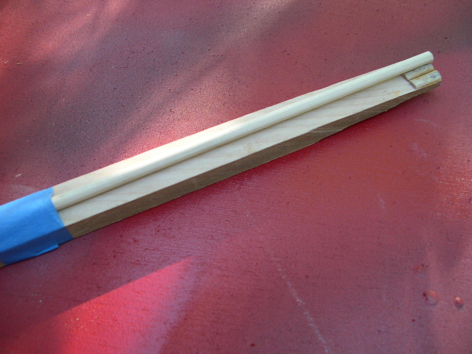 I made a crude fluting tool out of a length of 1/4" dowel. I glued three short pieces of half round dowel onto a length of scrap plywood. Then I taped a longer (6") piece of dowel onto the plywood to act as the anvil. The procedure was to jam the plywood/dowel tool into the space where the windshield normally sits, squeeze the longer dowel on top to create a little depression in the fairing strip, move the tool over 1/4", squeeze again, move, squeeze, ...etc. It took about an hour to do the whole fairing. I used a pliers to squeeze the dowel, but someone with strong hands could just squeeze it with their hands.