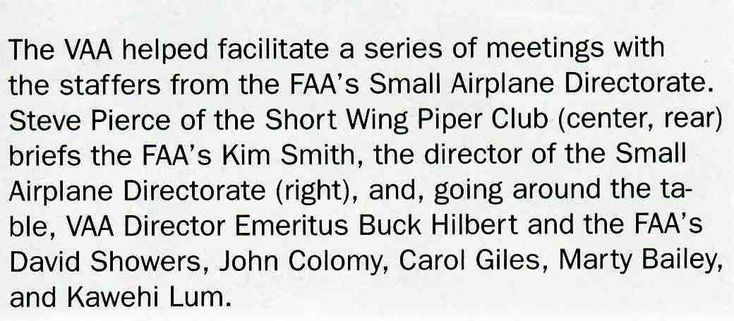 The October 2008 issue of EAA's "Vintage Magazine" featured some photos from Oshkosh, and there on page 9 is our own Robert Lees, pictured meeting with staff from FAA's Small Airplane Directorate. Unfortunately, the caption mis-identifies him as "Steve Pierce of the Short Wing Piper Club."