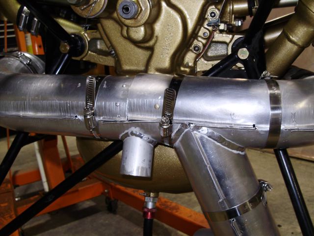 I had to purchase a heatmuff from Univair (very pricey) as my exhaust system did not have one. The new heatmuff was nicely built, but was put together with #4 PK screws and Tinnerman plates. Interestingly, the heads were down, the Type-A screws were sharp, and it looked impossible to be able to repetively take this apart foir inspection in a reasonable fashion. Here are some photos of Mark's solution to split the muff, make sleeve and flange fitting tabs, and the reinstallation with SS hoseclamps. Anyone made one of these in a resonable fashion? Doc