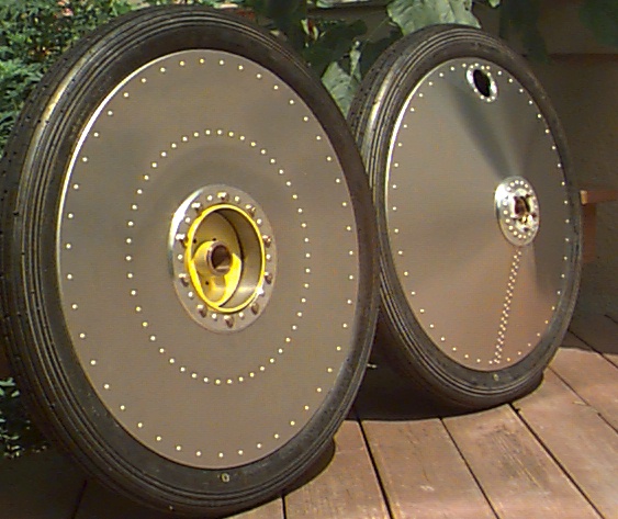 I made them. I made a few sets for others but finally decided the $1.63/hr profit was not prudent use of my time. These wheels have no brakes. All my other sets were made for Tri-Pacer hydraulics and Aeronca mechanicals. Wish to heck I had kept a set of those for myself.