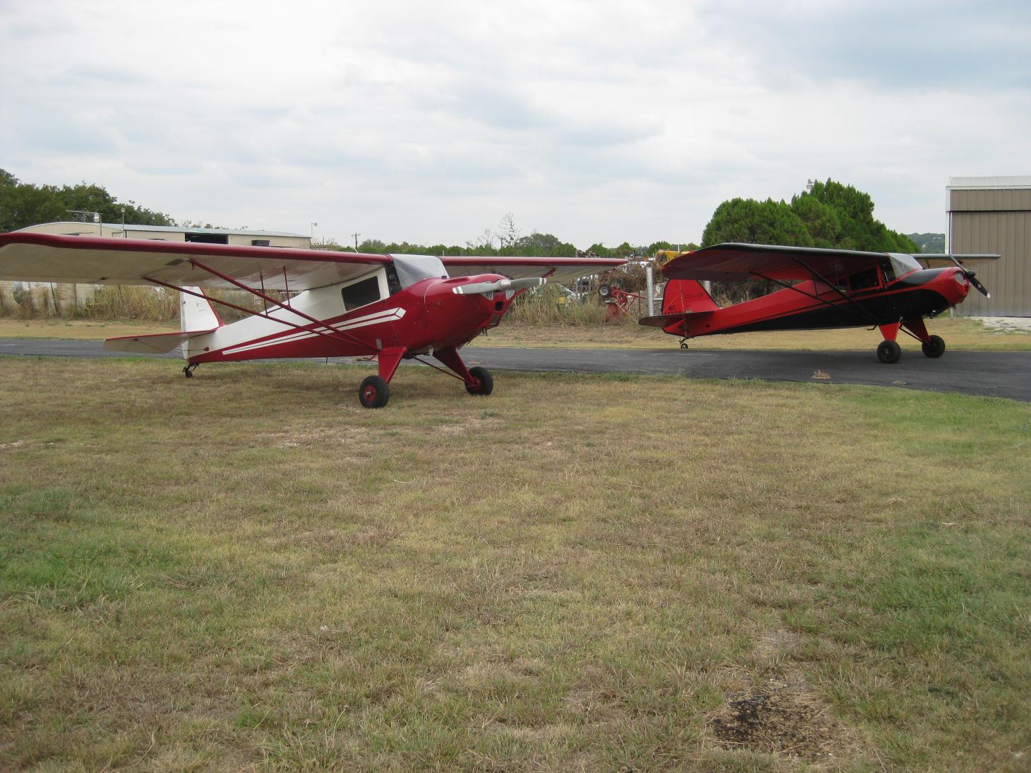 While shooting T & G's at Castroville, TX recently, Rick Farley teamed up and flew back to Bulverde (1T8) to have lunch. The brace of BC12-D's caused some heads to turn and some folks to introduce themselves. It doesn't get any better than that, other than Mark's BC12-D was buried in the hangar waiting for its annual (we should have had three flying at one time). Best wishes. Doc