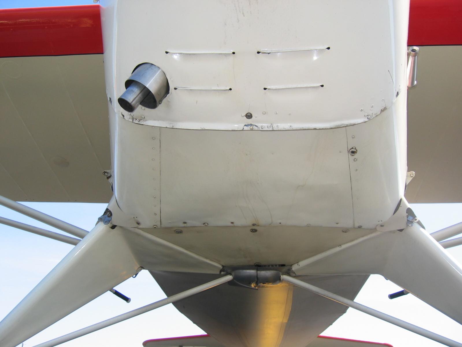 Flying our BC12-65 we smell what is most likely exhaust fumes in the cockpit. Our CFI has commented that he usually has a low grade headache after flying in the Taylorcraft (for the purpose of this discussion, let's assume that it's not the students giving him the headache!). We have a carbon monoxide detection card which remains normal during flight. There doesn't appear to be any significant openings in the firewall where exhaust could come through. The cabin heat isn't the source since we had a piece of foil tape over the opening into the cockpit to keep from adding heat on warm days. The most likely source I can come up with is the opening around the landing gear bungee cords. I've attached some photos of the exhaust pipe and underside of our cockpit. Is there some type of sealing system that should be used to eliminate this? Has anyone experienced something similar? Any ideas on what could be done to eliminate the fumes would be appreciated.