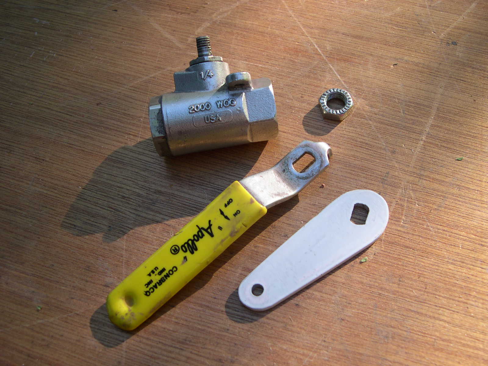 I have been making a new valve from a brass and stainless ball valve. The lever is being filed from a slab of metal. It will be up to my IA if I can put it in the plane.