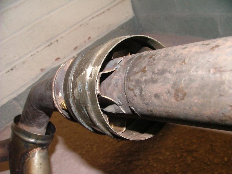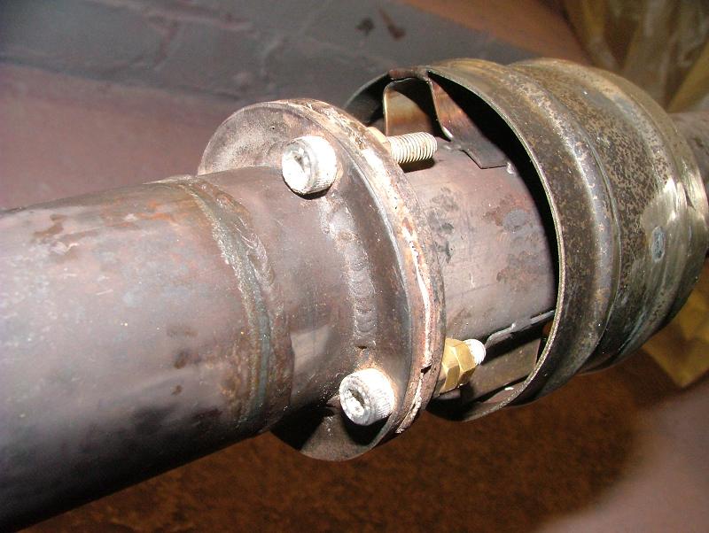 Many moons ago, being fed up with having to remove the whole mild-steel exhaust for repaires almost every year, we put a flanged joint in. The joint occasionally leaked, but not severely.