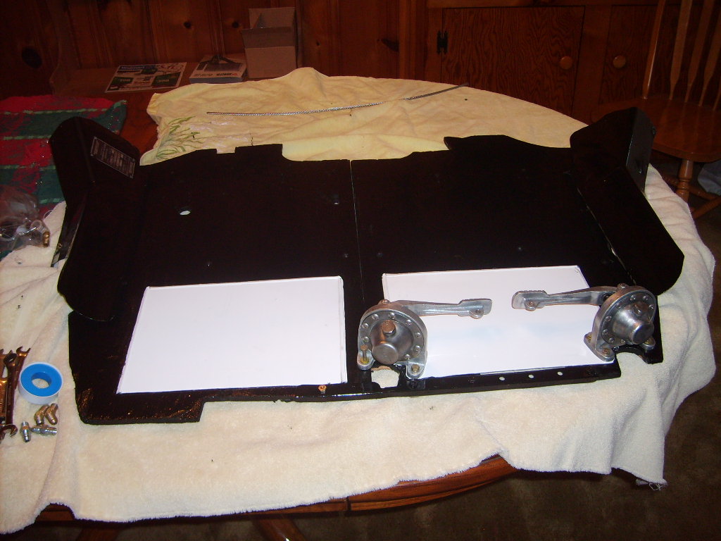 Chuck and I have started the brake conversion on the old girl and we are close to finished. We decided that since the floorboards had to come out temporarily we would repaint them so we dressed her up a bit . The brake mod has gone exceptionally fast and easy and getting the paperwork took no time at all. I'm attaching a pic of the floorboards with the master cylinders attached enjoy.