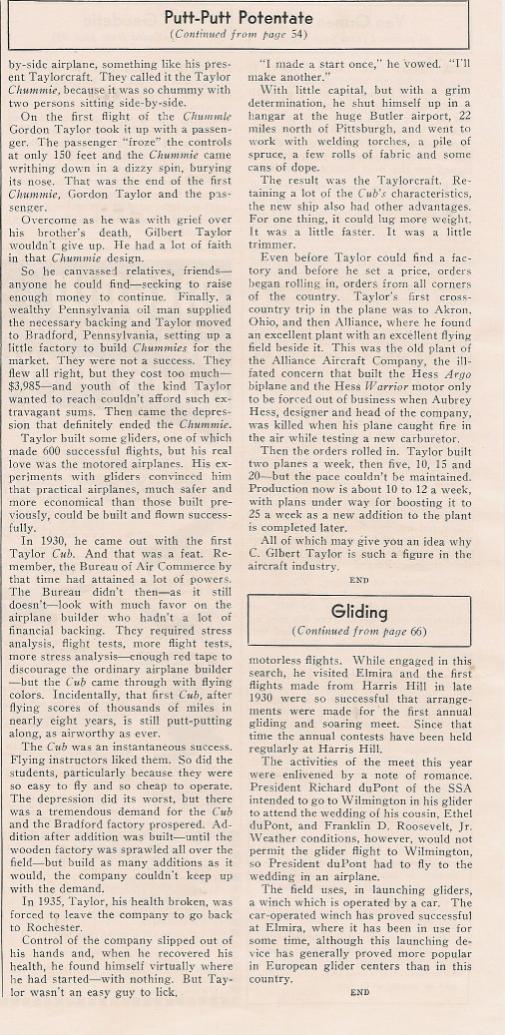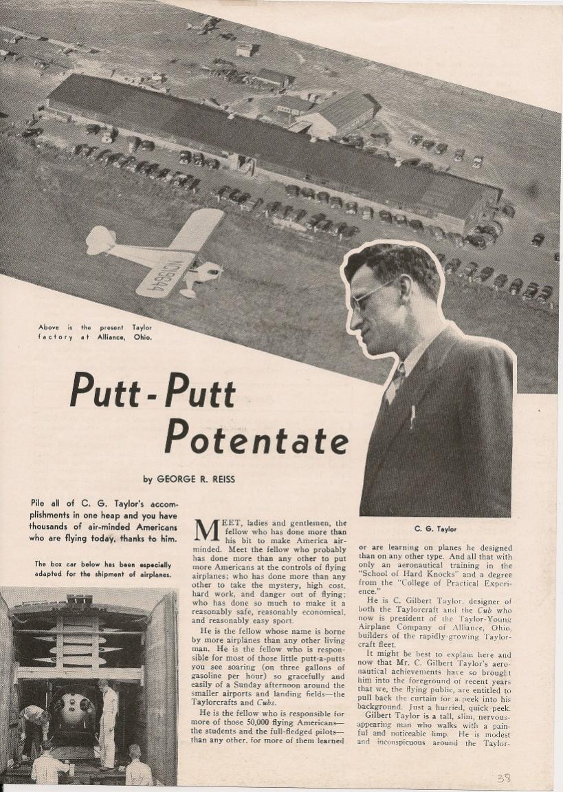 Here is an interesting article from an old magazine regarding C.G. Taylor. I picked up the article while in Oshkosh from the Fly Mart area.