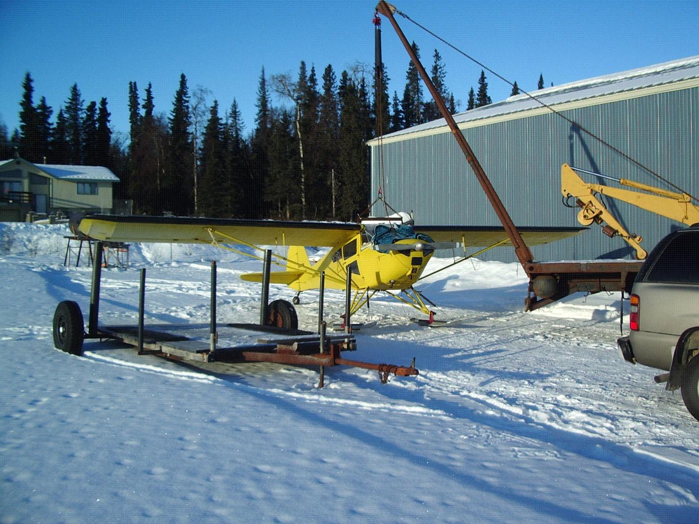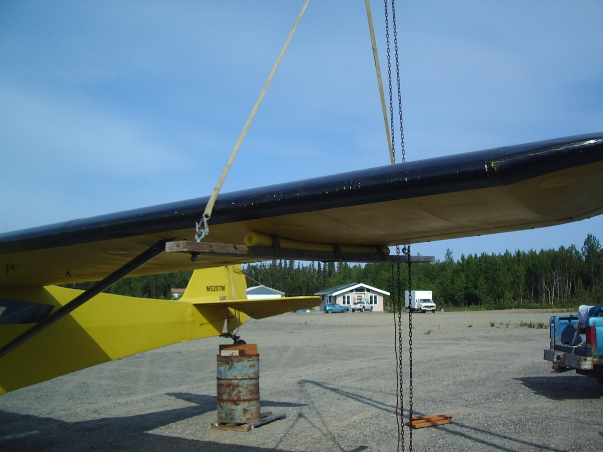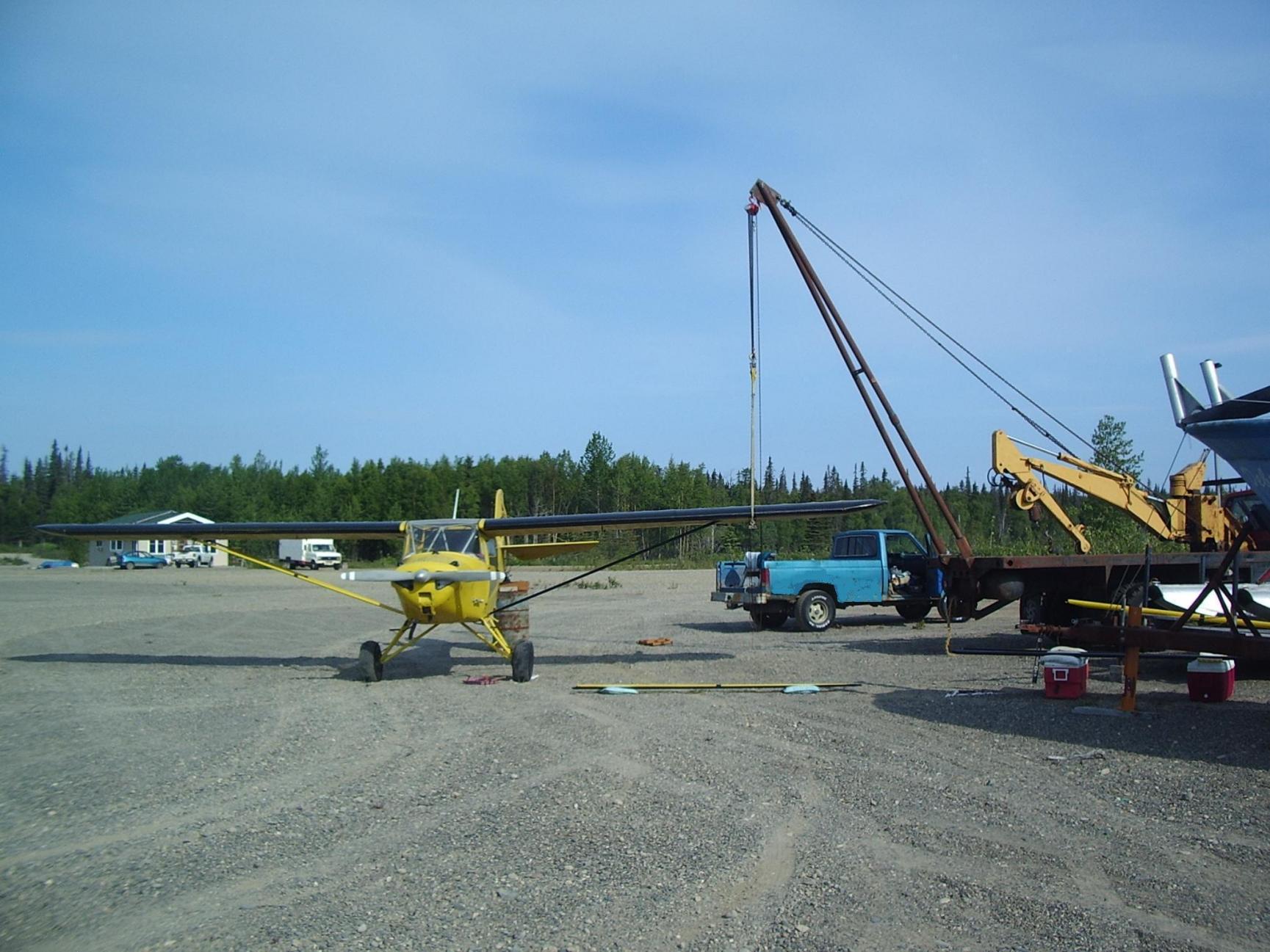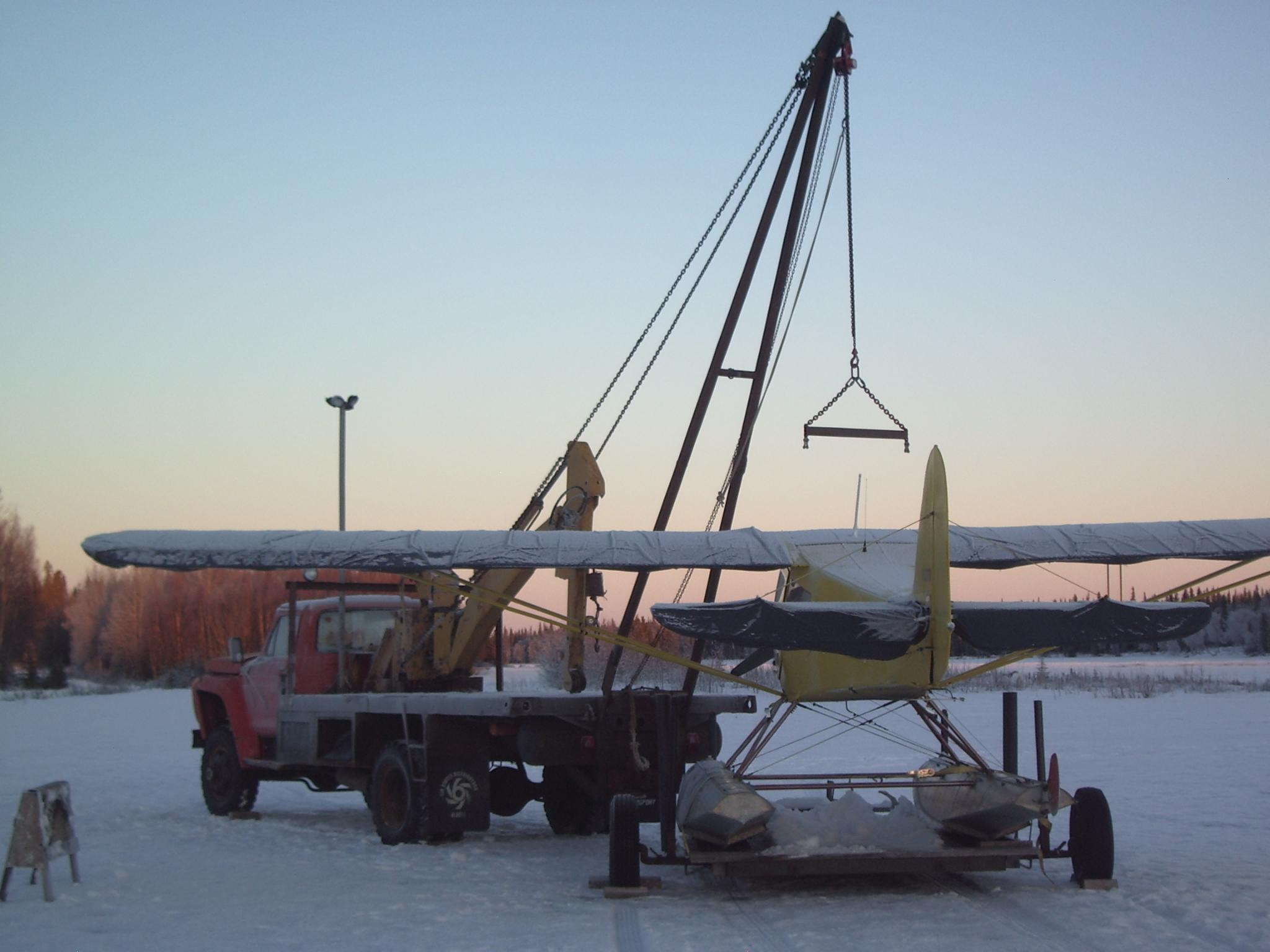 Larry, that old rig is really handy. I used it recently to install new Airframes Alaska LLC sealed lift struts. It has an old Case backhoe mounted on it that has a hydraulically- driven winch instead of a bucket. For the plane, I usually use the chainfall on the A-frame boom. It gives you control to the fraction of an inch. My 4 boys are really subtle when it come to that rig..."Dad, when you die, can we have the boomtruck?" DickLast edited by Dick Smith; 10-11-2011, 17:43.Dick Smith N5207M TF#159