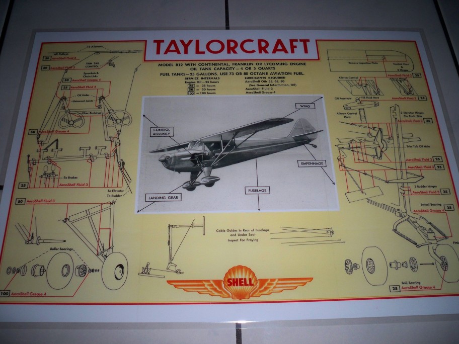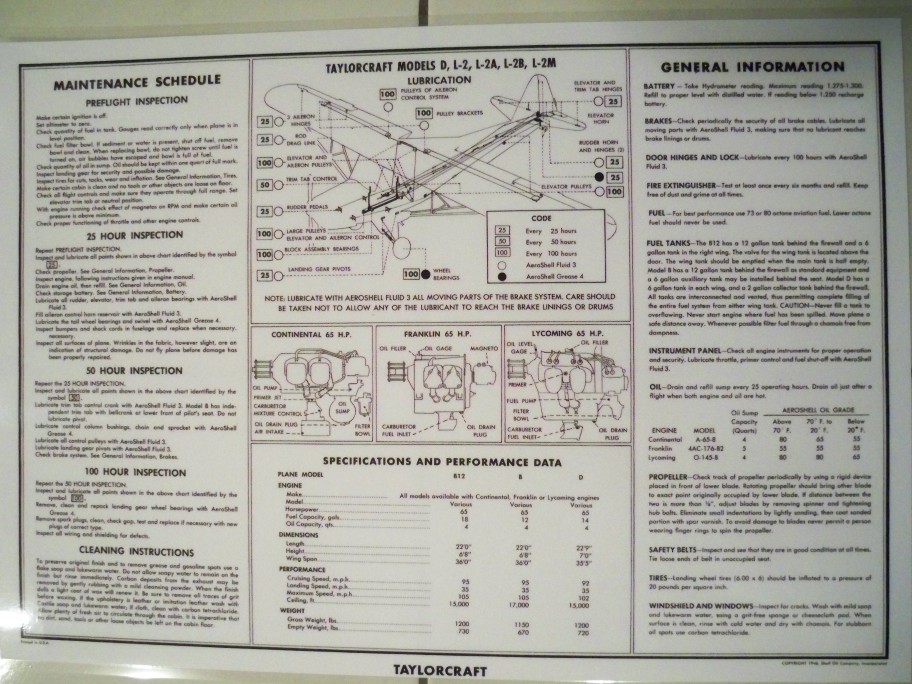 Here are a couple more Taylorcraft related items I recently picked up. The lube chart is unlike any I have ever seen before. I had it reproduced and laminated for my hangar. One side has the BC-12 info and on the back it shares L-2 information, too.