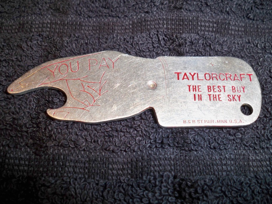As many of you know I like to collect Taylorcraft trinkets that catch my eye. I have never seen anything like this. I don't know the age, but I am thinking it would be fairly old. It has a small raised button that allow it to spin so it can pick out the next person who will pay for the next round. Let me know if you have any idea of the age. The fine print says B&B, St. Paul, MN USA.