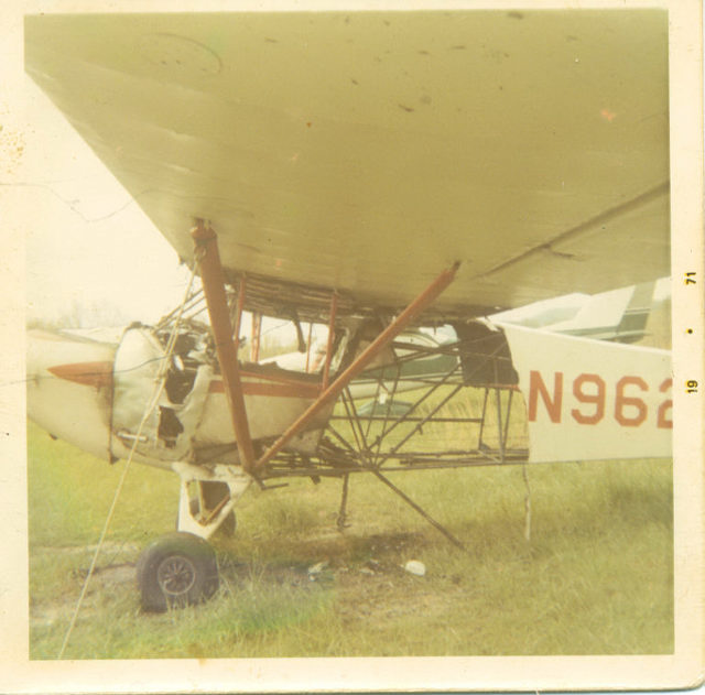 Dano always has some unbeatable pics....however I really like the one Andrew posted in teh wheat field too...something about it kinda takes me back in time. Reminds me of the stories my dad & grandpaw used to tell about landing wherever it was flat & long enough. Thier all great pics though. I don't have any taylorcraft pics this year,I haven't even flown a t-craft this year but hoping to get back to work on Crispy soon. Trying to help dad finish the restoration on his ragwing 170(the bird I learned to fly in). We plan to do the first runs on the engine next week,probably tuesday or wed. As soon as we have it back in the air then we both plan to devote all of our full spare time attention to Crispy. Here is a pic of Crispy after it's demise in May 1971, I know it's not a current pic from this year and I will remove it if you think it needs to be,but I just wanted to share one and it is very unique and unlike anyone else you'll ever see.....or at least I hope no one else every has to see one like this. This will also show some of the newer members why I call her Crispy Critter since I still can't seem to upload a new photo gallery after my old one disappeared. Merry Christmas everyone