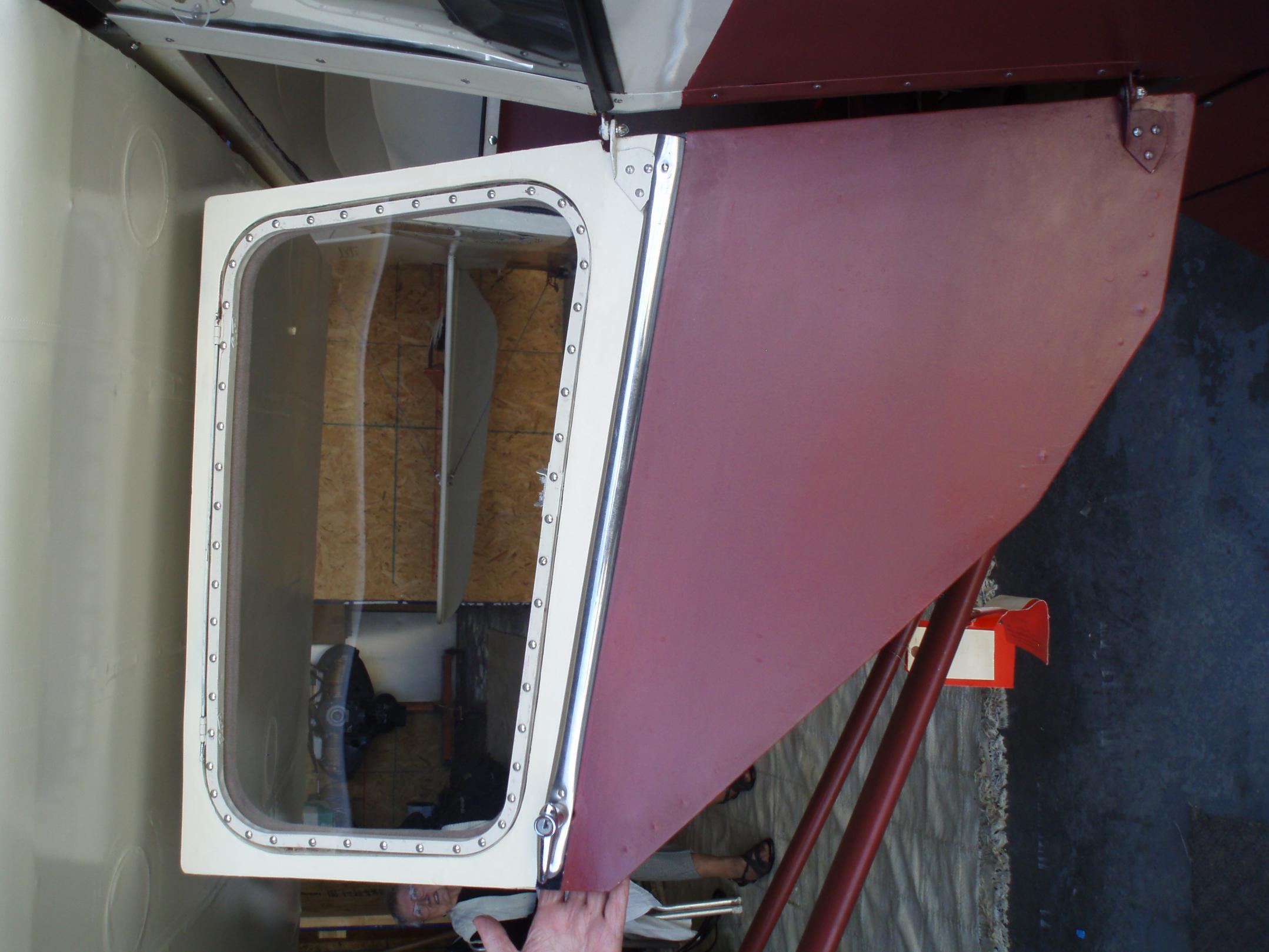 The inner and outer pictures of the sheet metal doors are from a post war (~1946) plane.