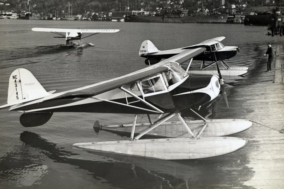 Here is a picture of a 45 Taylorcraft with a Beech Roby prop. They are especially nice for planes on floats since you can have a take off prop with a flat pitch for maximum efficiency and then go to a coarse pitch for cruise.
