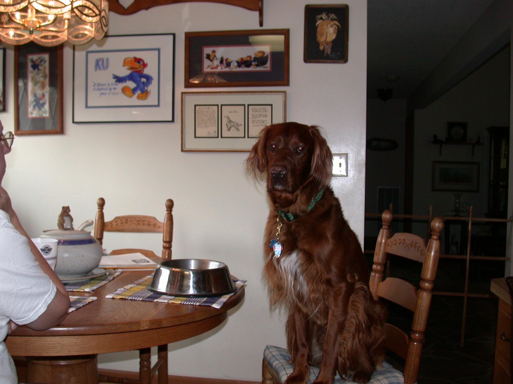 Yes, he watches a lot of TV and likes to sit at the table too. He has his own chair he sits in. And you thought YOUR family was strange!
